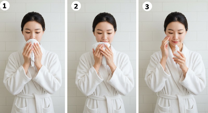✓ 1단계: 제거 - 각질, 유분, 세균을 부드러운 타월로 물리적 제거